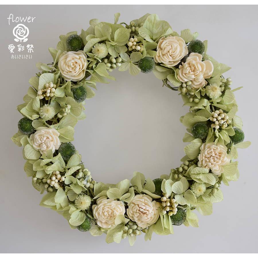 白と緑のお花で ドライフラワーリース ナチュラルテイスト ギフト プレゼント 誕生日 K15da 愛彩祭 フラワーリースのお店 通販 Yahoo ショッピング